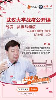结合哲学、宗教学和心理学学科特点,学院针对疫情期间热点问题专门打造疫情系列公开课。学院孙劲松教授《周易“见微知著”思想与疫情防控》课结合疫情谈“见微知著”,诠释我们要有对潜在风险科学预判和治理的能力,引发了我们对国家治理体系和治理能力现代化建设的思考。心理学系钟年教授的《战疫、抗疫与和疫——从心理自强到文化自觉》公开课提倡以高度的文化自信从国家层面和个人层面共同发力,冷静对待人与疫情之间可能出现的长期共存关系。喻丰教授《疫情中的道德心理学》借用道德、谣言传播的心理学机制解释疫情中出现的种种个案。这些课程都受到学生们的广泛欢迎,吸引校内外超过10万名网友在线观看。
