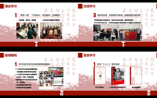成人视频 2019级硕士生党支部书记王钲甫首先向大家介绍了疫情期间的工作开展情况。作为处于全国疫情“震中”的高校研究生基层党支部,成人视频 2019级硕士研究生党支部严格按照“停课不停学”防控工作要求,将“三会一课”打造成党员的“精神加油站”。创新开展党组织活动方式,多次召开线上党支部会议,开展抗疫专题主题党日活动,举行系列特色党建活动,如“疫情防控之我见”主题征文,组织支部党员参与高校大学生联合抗疫志愿宣讲等,为打赢疫情防控特殊战役、确保学习科研任务顺利完成提供了坚强的组织保障。