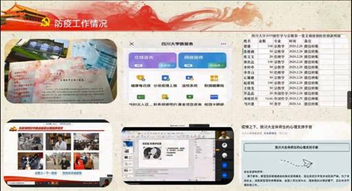 四川大学2019级哲学与宗教第一党支部响应积极防疫工作,向身处湖北地区同学寄去爱心慰问包,开通心理健康咨询热线,邀请一线抗疫医生开展抗疫讲座等,落实党员责任。