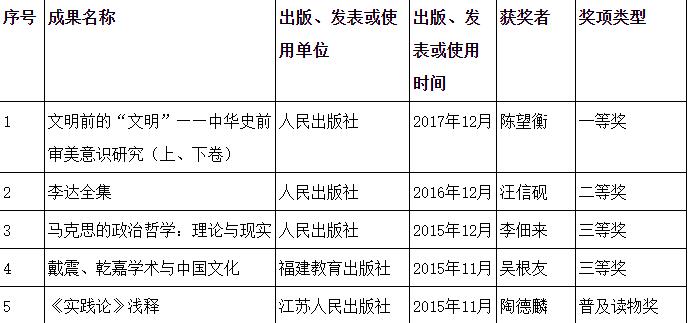 本网讯(通讯员 邓莉萍)近日,教育部正式发布了《关于第八届高等学校科学研究优秀成果奖(人文社会科学)奖励的决定》。我院获得一等奖1项,二等奖1项,三等奖2项,普及读物奖1项。