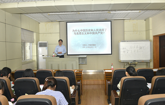 开班式后,学院副院长李佃来教授作了“为什么中国历史和人民选择了马克思主义和中国共产党”的第一堂专题党课。