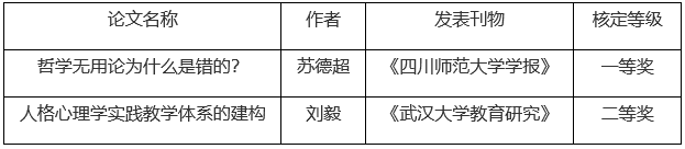 近日,本科生院公布了2018年优秀教学研究论文获奖名单,我院苏德超教授的论文《哲学无用论为什么是错的?》获得一等奖,刘毅副教授的论文《人格心理学实践教学体系的建构》获得二等奖。