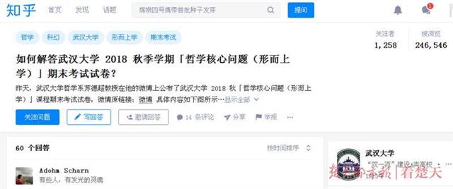 这道题的出题人,是武大哲学院教授、博导苏德超。前段时间,这道题在微博上之火了,还有人把它搬到“知乎”上提问,引来超过24万人次浏览,不少人提交了脑洞大开的“答卷”。每学期,苏德超都会布置意想不到的期末考题,往往都能火一阵子。但他说,自己不想当网红老师,安安静静当个学生们欢迎的“校红”挺好。