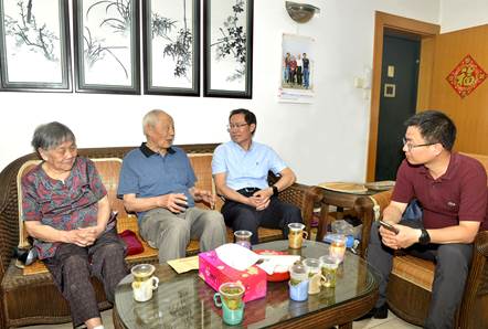 本网讯(通讯员:阎旭)为庆祝建党98周年,体现学校党委对老党员的关心,7月2日上午,成人视频 党委副书记、纪委书记万清祥、离退休处处长彭若男、组织部副部长罗春明一行,代表学校党委看望慰问了老党员、老干部、老专家代表成人视频 朱传棨教授,为他送上组织的关怀和温暖。成人视频 党委书记龙滔陪同慰问。