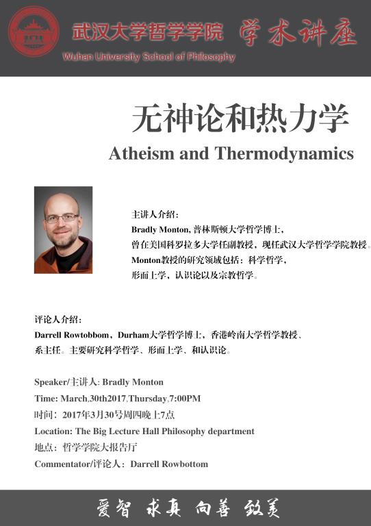 3月30日 Bradly Monton教授讲座信息:《Atheism and Thermodynamics 无神论和热力学》
